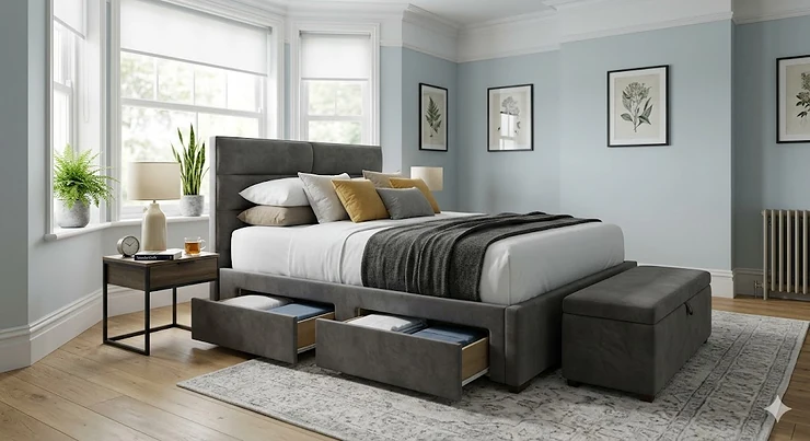 For British weather considerations: Ottoman storage keeps bedding completely enclosed, protecting against dust and damp. Drawer storage, conversely, allows better air circulation around stored items—useful in older properties prone to condensation. If your bedroom suffers from damp issues, drawer storage with some airflow might actually preserve stored fabrics better than sealed Ottoman compartments.